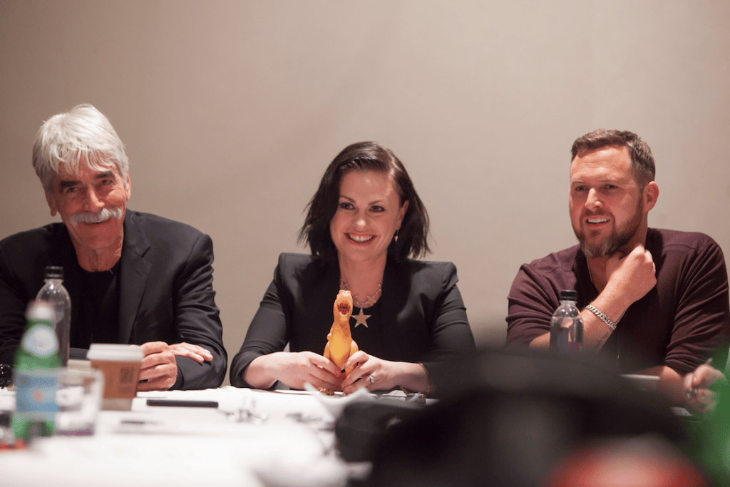 They seemed ever so slightly nervous that I might be offended that they wanted me to be like this big, bad-ass T-Rex,” says Paquin. “I was so bracing myself to be like some little thing because I’m a girl. And I’m like, “That’s fantastic,” and they’re like, “Really?” And I’m like, “Yeah, that’s awesome! I get to be, you know, one of the dudes.
