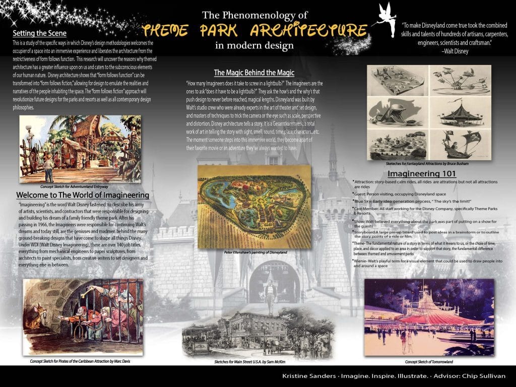 Today, Sanders is a graduate with her Disney degree and has plans to work for Disney as an Imagineer creating Disneyland-like places. As for her desire to find out how Disney theme parks and resorts are magical places, she placed it in the titled of her thesis that describes the three things needed to design of each one: “Imagine, Inspire, and Innovate”.